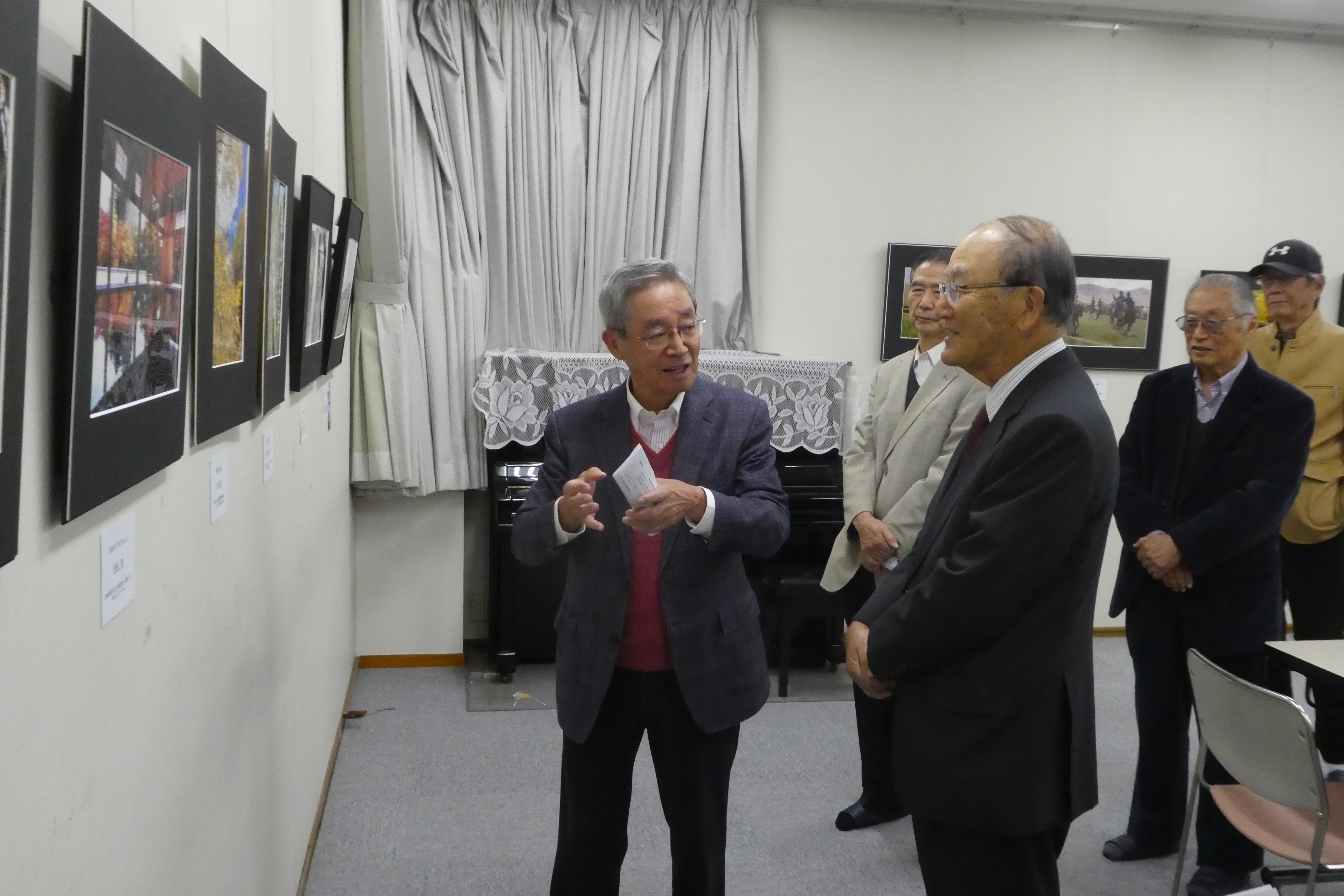 カメラ屋さんが聖蹟桜ヶ丘駅前、永山駅前とも閉店してしまい、どうしたものかと迷ったのですが、たまたま桜が丘駅前で見つけたコピー屋さんで話を聞いたところ、印画紙より若干薄い用紙だけど額に入れても遜色のない用紙での印刷サービスをしている、ということで、そこで印刷をお願いしました。前回使用の額に収めて、3日の午前中に行なわれた搬入・展示作業にのぞみました。 今回写真展への参加者は18名で、力作35作品が出展されました。 3日の午前中に出展者総出で、多目的室の壁に写真を掲示したり説明ラベルを貼付したりの準備を終わらせ、セッティングを完了。その後一人一人が出展者全員の前で写真の見どころや撮影の背景などの説明を行ない情報を共有しました。 期間中は三村代表、栗川副代表はじめ約135名の方々が来場され、力作、意欲作を熱心に鑑賞していただきました。 展示終了後の10日(火)、出展者による「打ち上げ・懇親会」が行なわれ、一人ひとりが写真展についての思いや取り組みなどを述べ、次回以降の出展についても意欲を示されました。