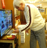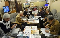 | 多目的室で代々木の杜短歌会の月例歌会があり、 歌会終了後、茶木登茂一さんが談話室に寄り懇親会の輪に | |