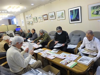 作業開始前には絵画展 (11/4~10)を鑑賞したり、また、重量物の会員名簿の封入というハンデなどありましたが作業は順調に進みました。