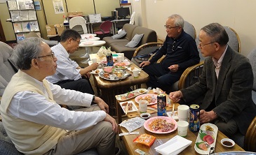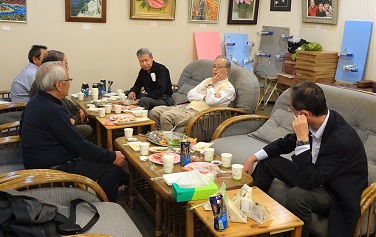 | 茶木さんに続いて中野紘一さんも談話室に寄り懇親会の輪に | |
