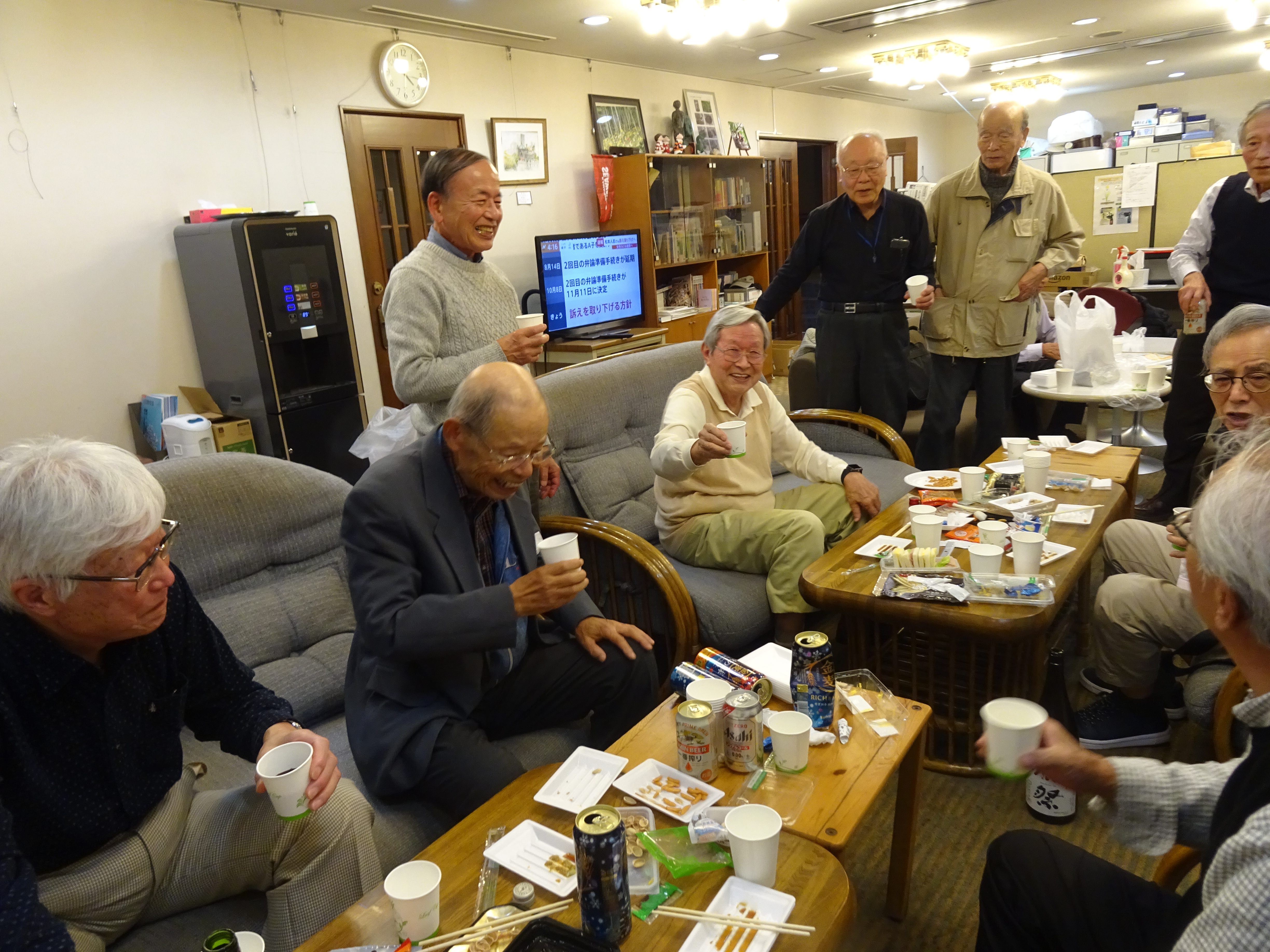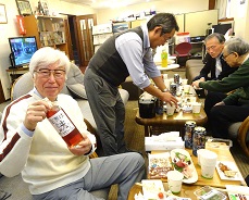 引き続き行われた新年会を兼ねた懇親会には、太極拳・写真展関係で談話室を訪れたKさん、挨拶に来られた㈱セレモアの小瀧さんたちも輪に加わり、楽しい時間を過ごしました。