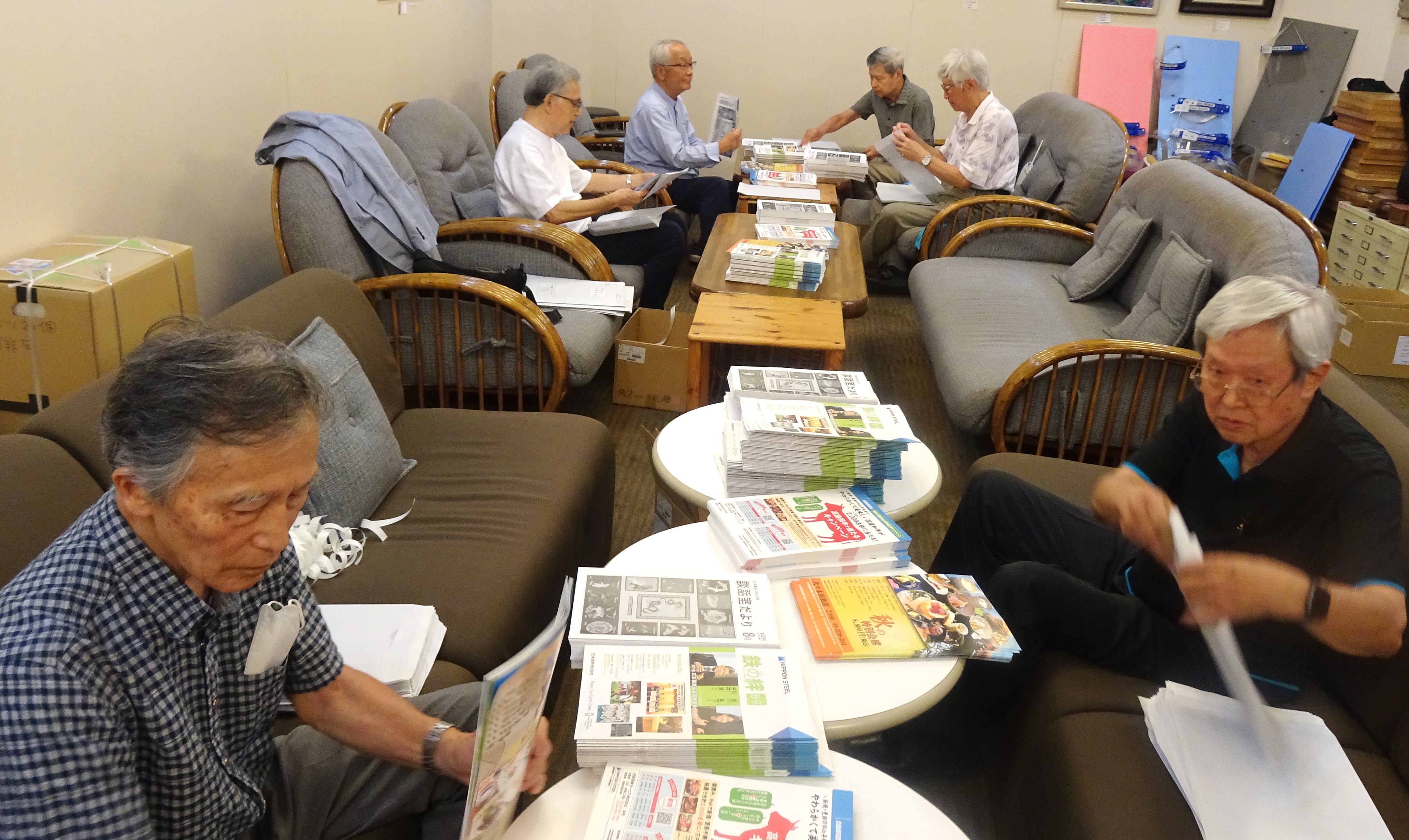 猛暑に台風と、異常気象が続きますが、台風一過の9月8日、涼しくなるかとの期待を裏切り相変わらずの暑さが続く中、会報発送・封筒詰め作業に、ボランティアが4名と、セレモアから下村龍彦さんが応援に駆け付け、計5名での作業となりました。