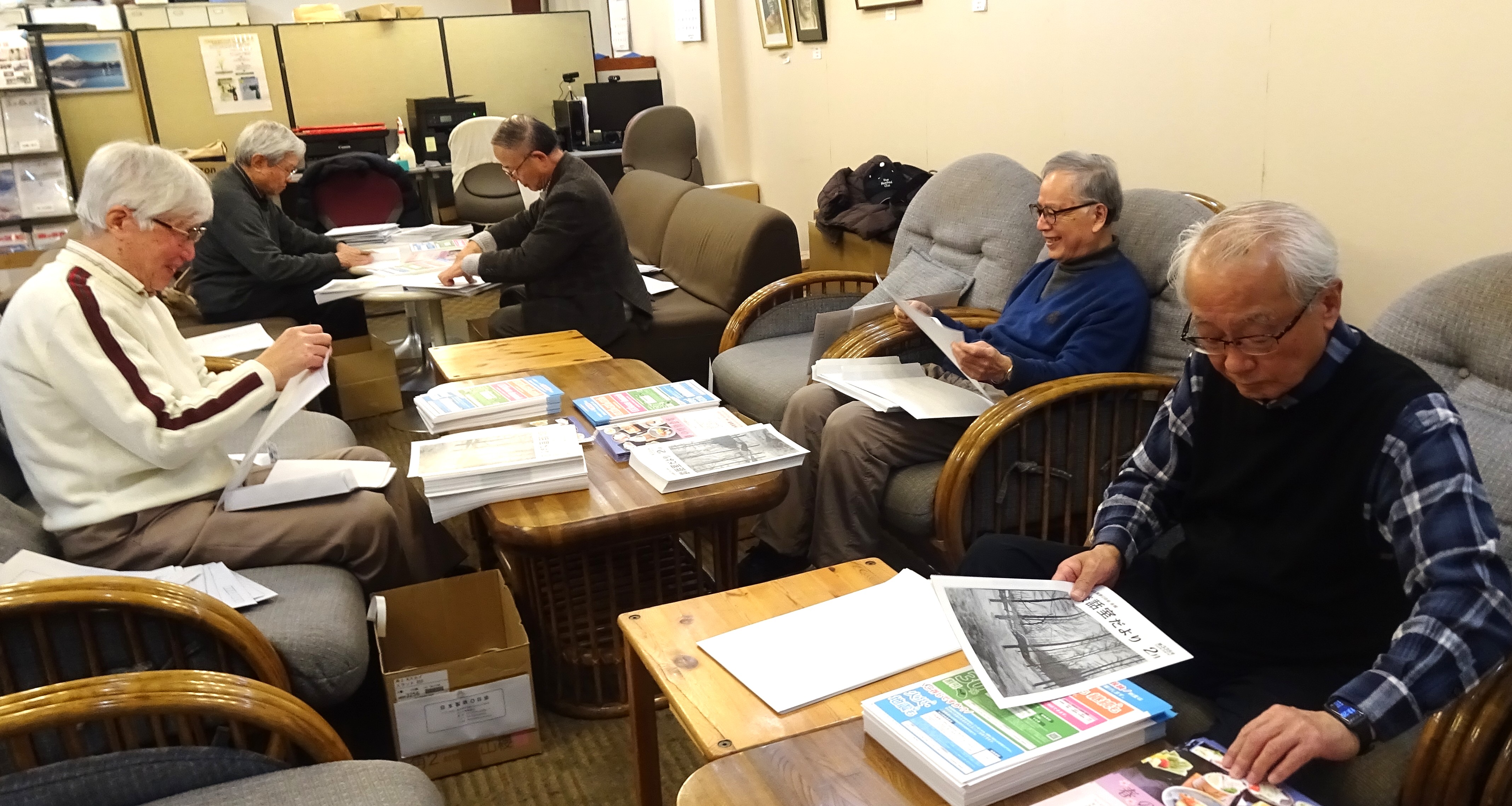これら会報はじめ何種類かの冊子・チラシを全会員分封筒詰めするのは大変な作業なのですが、有志の会員が毎回ボランティアとしてお手伝いしています。そのため、作業は2~3時間ほどで終了し、即日配送業者へ引き渡すことができています。
