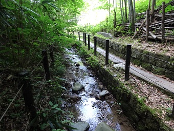 | 霧降の道 | 右側は雑草の生い茂る崖 |