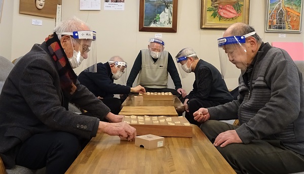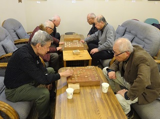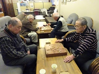 寒さも一段と厳しく感じる中、4人の将棋愛好家が参集し、熱戦を繰り広げました。